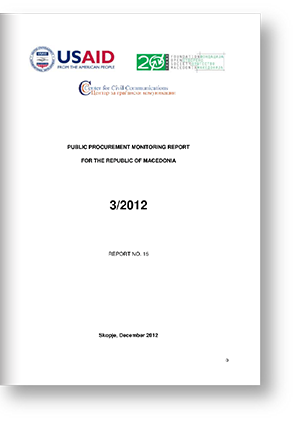 Public Procurement Monitoring15 Monitoring of public procurement report (January-March 2013)The Centre for Civil Communications published the monitoring results for public procurements implemented in Macedonia in the period January-March 201330/08/2013515 Monitoring of public procurement report (January-March 2013) Post Views: 5 previous Findings from Recent Public Procurement Monitoring in Macedonia next Handbook for microenterprises on participation in public tenders 2012