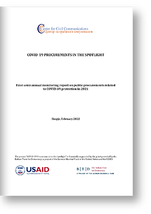 This report is based on in-depth monitoring of 40 public procurements for goods, services and works related to COVID-19 protection whose contracts were awarded in the first half of 2021, i.e. in the period from 1 January to 30 June 2021. Targeted public procurements represent 38% of all COVID-19 tender procedures organized in the analyzed period (total of 106 tender procedures). The value of these tender procedures accounts for 5.7 million euros, i.e. 36% of cumulative value of all COVID-19 public procurements organized in the analyzed period (15.7 million euros).