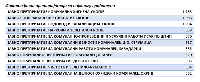 - Во локалните јавни претпријатија работат повеќе од 12.000 луѓе, иако бројот на вработени во последните неколку години благо се намалува.