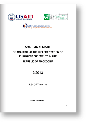 From November 2008, the Centre for Civil Communications from Skopje has continuously analysed the implementation of public procurements in the Republic of Macedonia as regulated under the Law on Public Procurement.